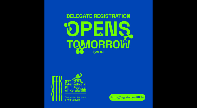 കേരള സംസ്ഥാന ചലച്ചിത്ര അക്കാദമി ഡിസംബര് 9 മുതല് 16 വരെ തിരുവനന്തപുരത്ത് സംഘടിപ്പിക്കുന്ന 27ാമത് ഐ.എഫ്.എഫ്.കെയുടെ ഡെലിഗേറ്റ് രജിസ്ട്രേഷന് നവംബര് 11 വെള്ളിയാഴ്ച രാവിലെ 10 മണിക്ക് ആരംഭിക്കും. www.iffk.in എന്ന വെബ്സൈറ്റില് നല്കിയിട്ടുള്ള ലിങ്കിലൂടെ ഡെലിഗേറ്റ് രജിസ്ട്രേഷന് നടത്താവുന്നതാണ്. പൊതുവിഭാഗത്തിന് 1000 രൂപയും വിദ്യാര്ത്ഥികള്ക്ക് 500 രൂപയുമാണ് ഡെലിഗേറ്റ് ഫീസ്. മേളയുടെ മുഖ്യവേദിയായ ടാഗോര് തിയേറ്ററില് സജ്ജീകരിച്ചിട്ടുള്ള ഡെലിഗേറ്റ് സെല് മുഖേന നേരിട്ടും രജിസ്ട്രേഷന് നടത്താം.