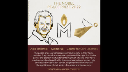 ബെലാറഷ്യന് മനുഷ്യാവകാശ പ്രവര്ത്തകനും റഷ്യന്, ഉക്രൈന് മനുഷ്യവകാശ സംഘടനകള്ക്കും സമാധാന നൊബേല്